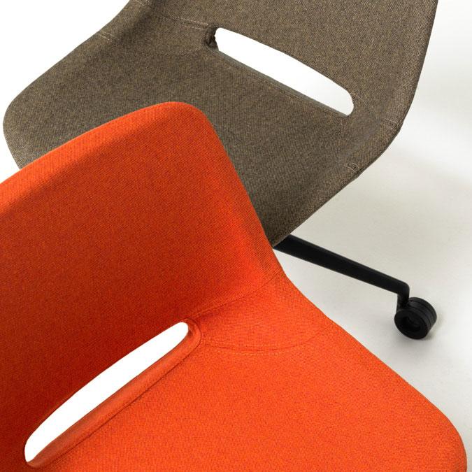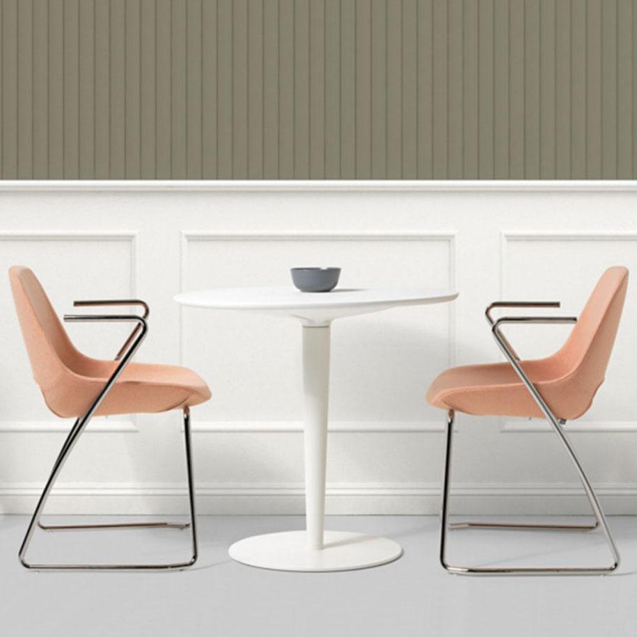 The sweetness of its forms follows through into the optional chromed armrests, the curves of which flow uninterruptedly around the chair. Harmonious and elegant, Clea is also available in the version CLEA PLUS, an armchair that it is characterised by its rounded shape thanks to its distinctive armrests.