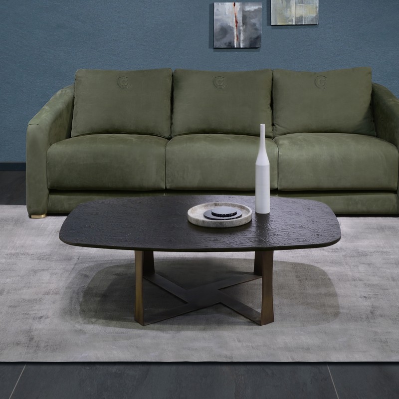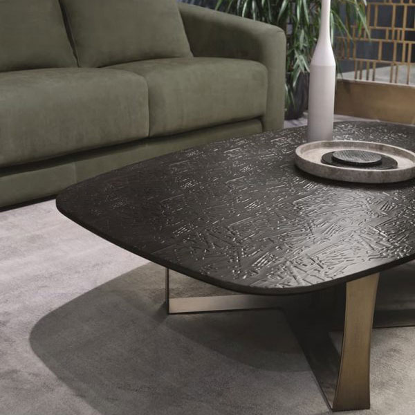 Coffee table with glass top in the barrel shape. TOP available in bronzed glass, in dark frisè sycamore or in dark stained wood with three-dimensional decorated effect (TL68C). Ideal to integrate with Cube ottoman (PO74).