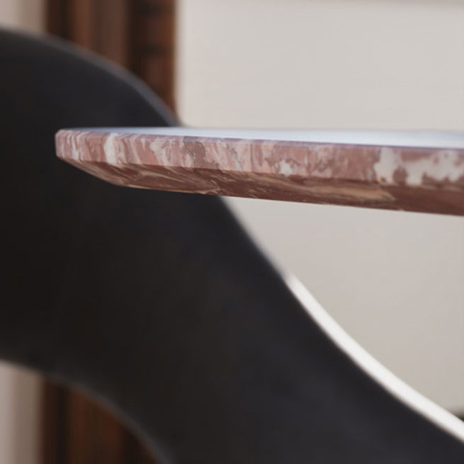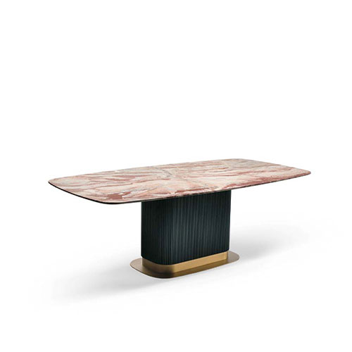 Marble top dining table. The thin orobic marble top makes itself notice for it’s strong delicacy.