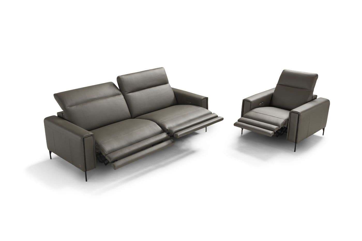 The GARY sofa represents the leather version of the Arnold sofa, which, with the same look and dimensions, has no decorative draughts and allows more rational cuts to be developed on its upholstery. The front foot is a distinguishing element, giving it a refined note.