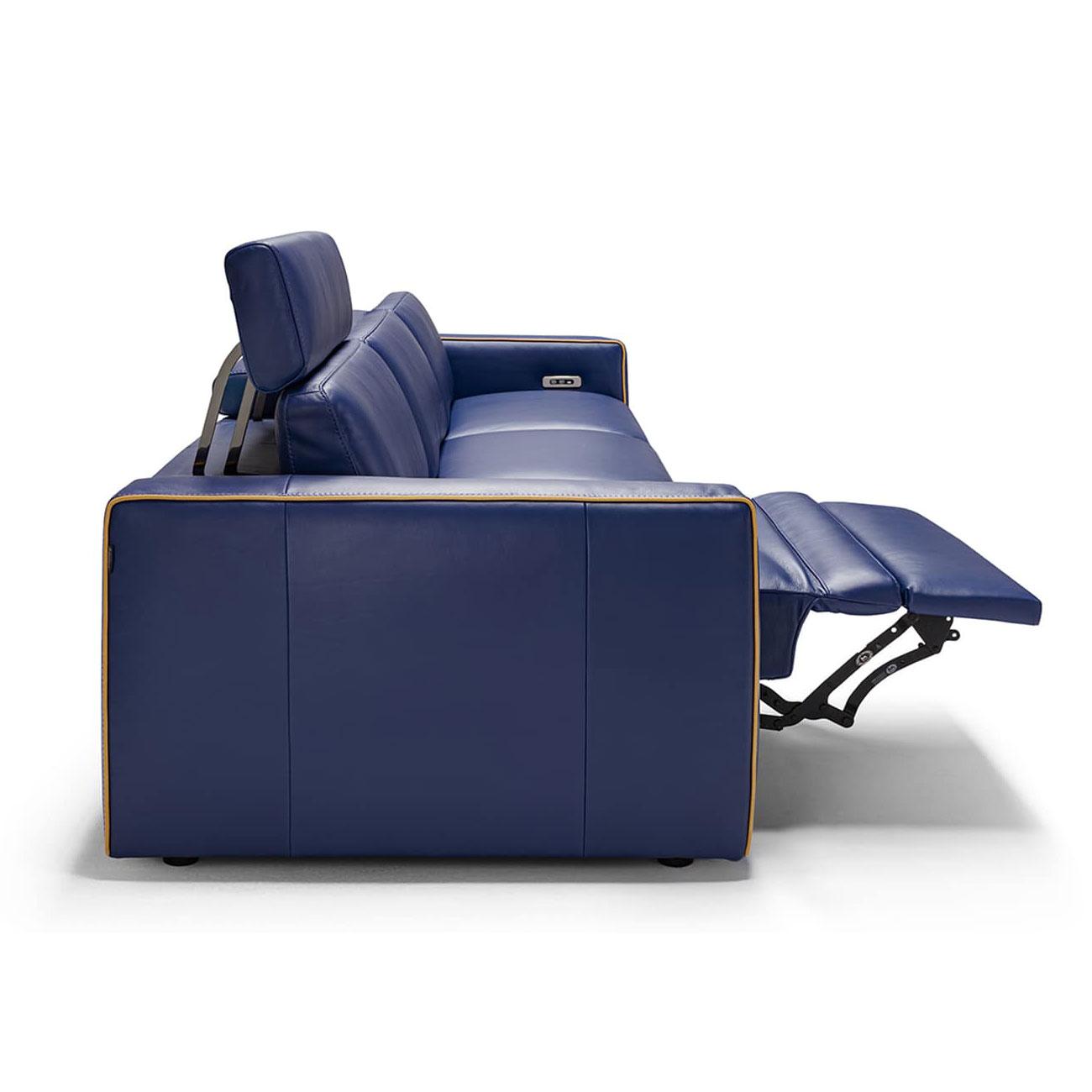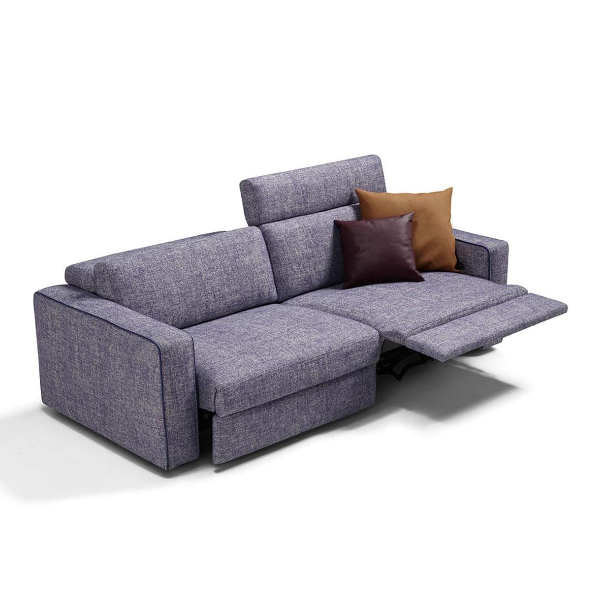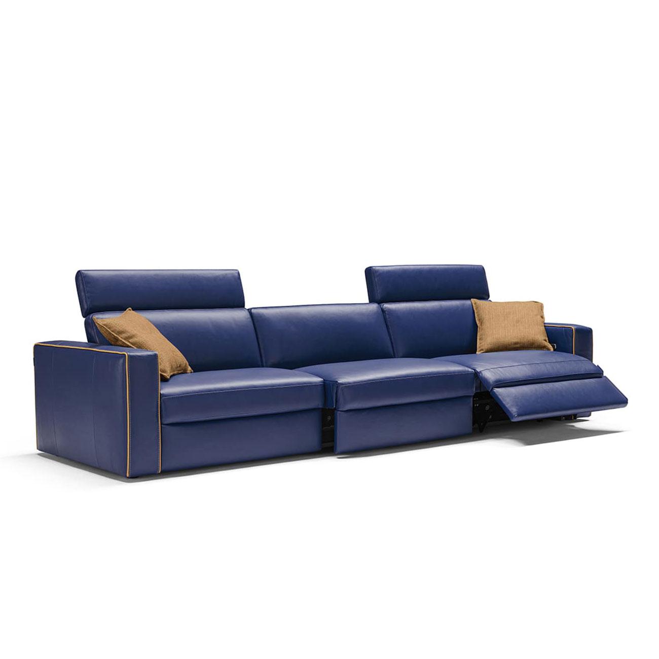 The KUBY sofa is characterized by a square and contemporary design perfectly fitting with modern environments. In the relax version, the seats are equipped with electric mechanisms that increase by 14 centimeters the sofa seat depth and open the footrest. The moving headboards, also available in a fixed version, are newly designed and provide a comfortable support for the head when in the lifted position.