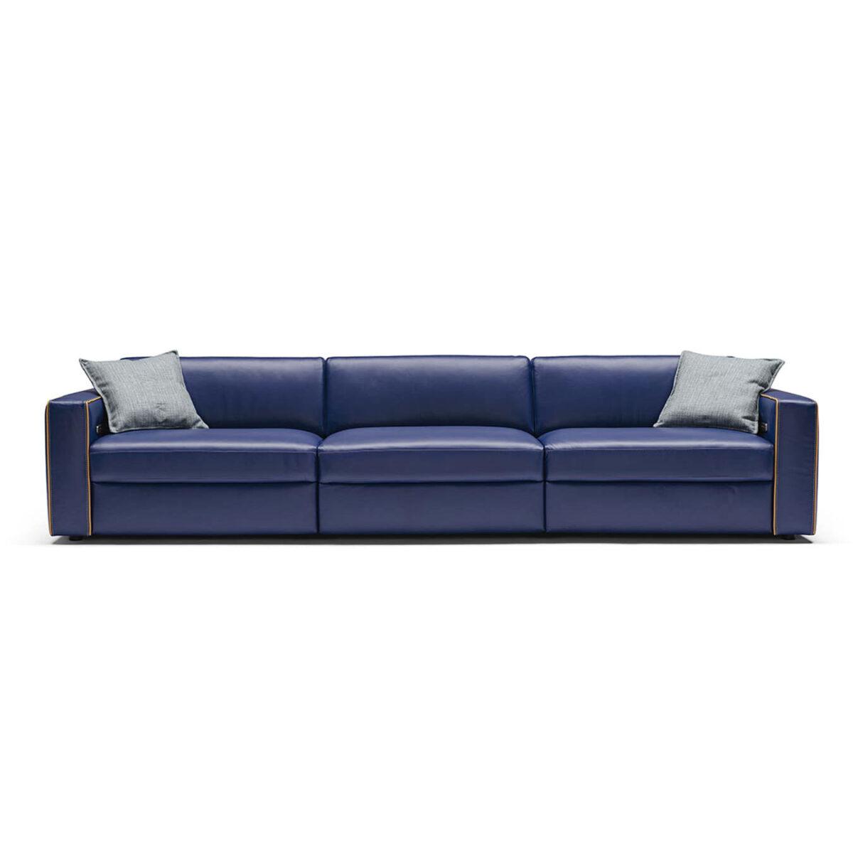 Available in leather, fabric or microfiber, thanks to the independence of the relax elements, this sofa offers endless possibilities of comfort as well as a great presence embellished by the detail of the piping and the rod stitching.