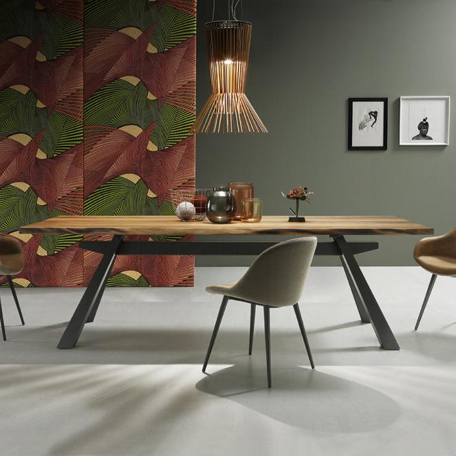 Zeus extendable table with lacquered metal.. Top and extensions in veneered wood.