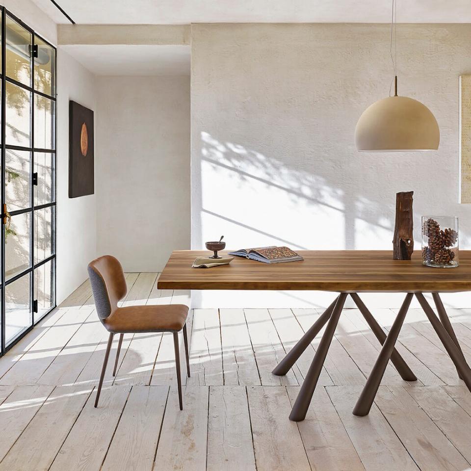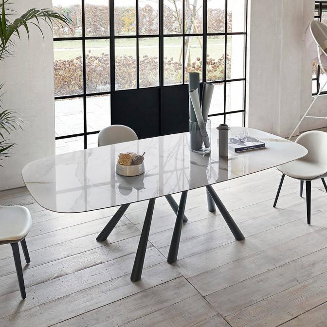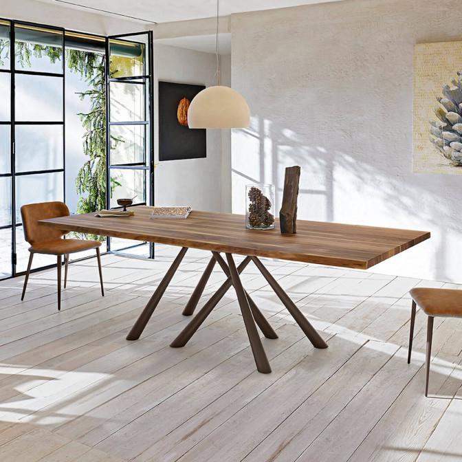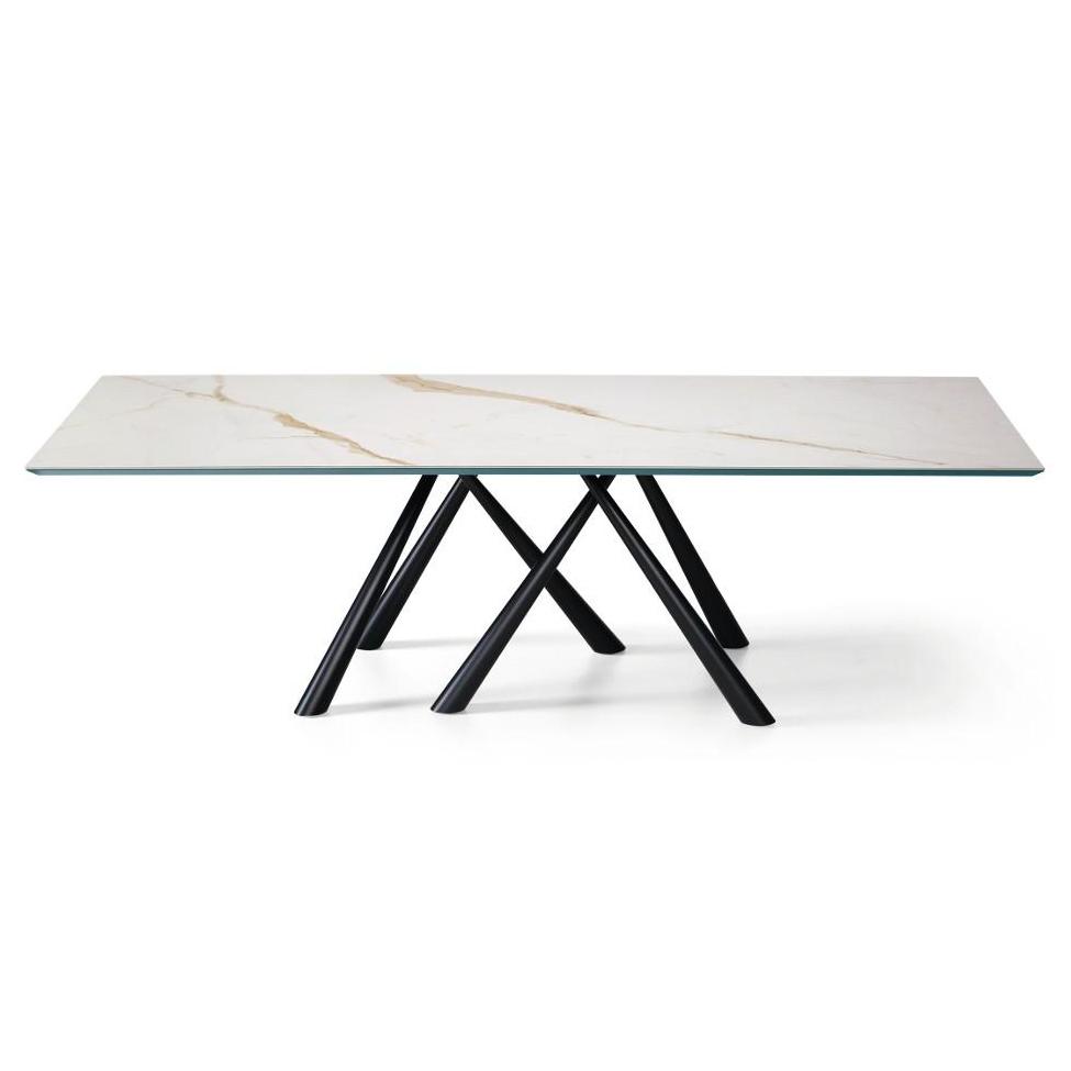 Forest fixed table with base in lacquered metal, available in different sizes. Top in crystalceramic or solid wood.