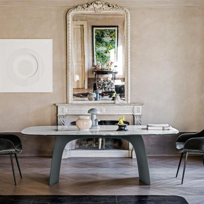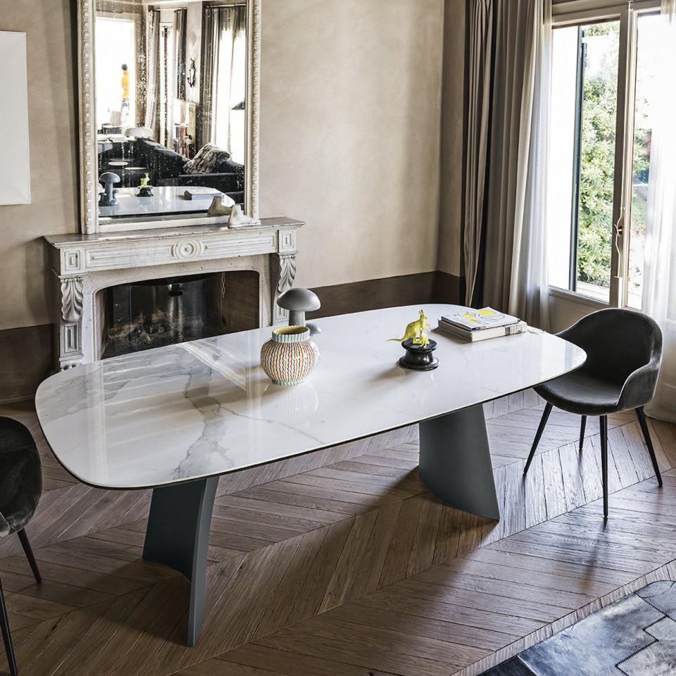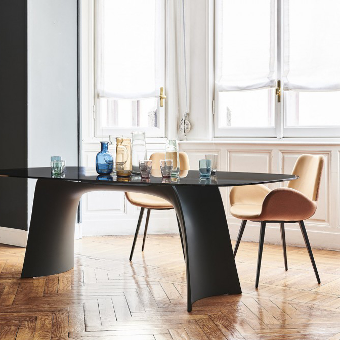 Moonlight fixed table with base in Baydur.