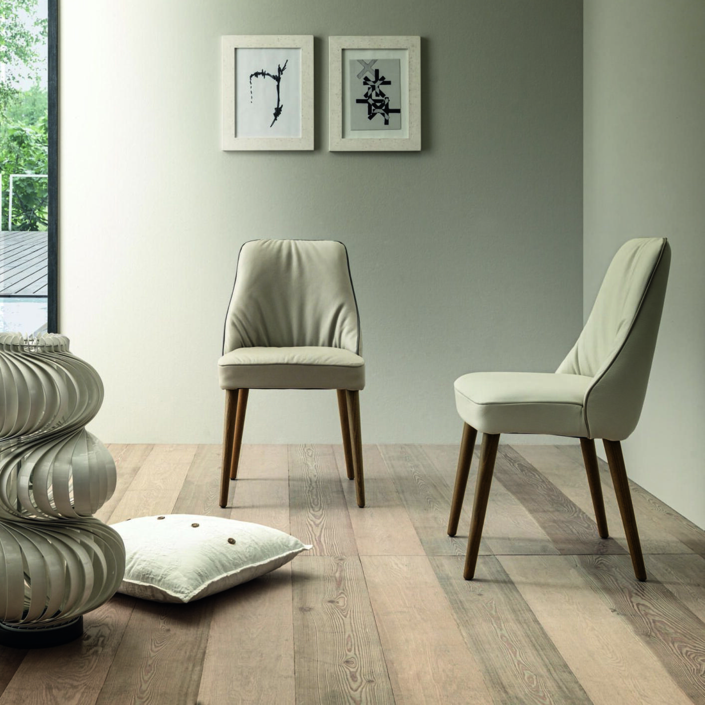 Very elegant chair, its ash wood structure with a wide range of material choice combination makes Jolly Soft chair suitable with a classic and a modern design. Seat and back are coated with a soft piece of leather; conical legs in the picture are realized in walnut canaletto solid wood but can be leather covered upon request.