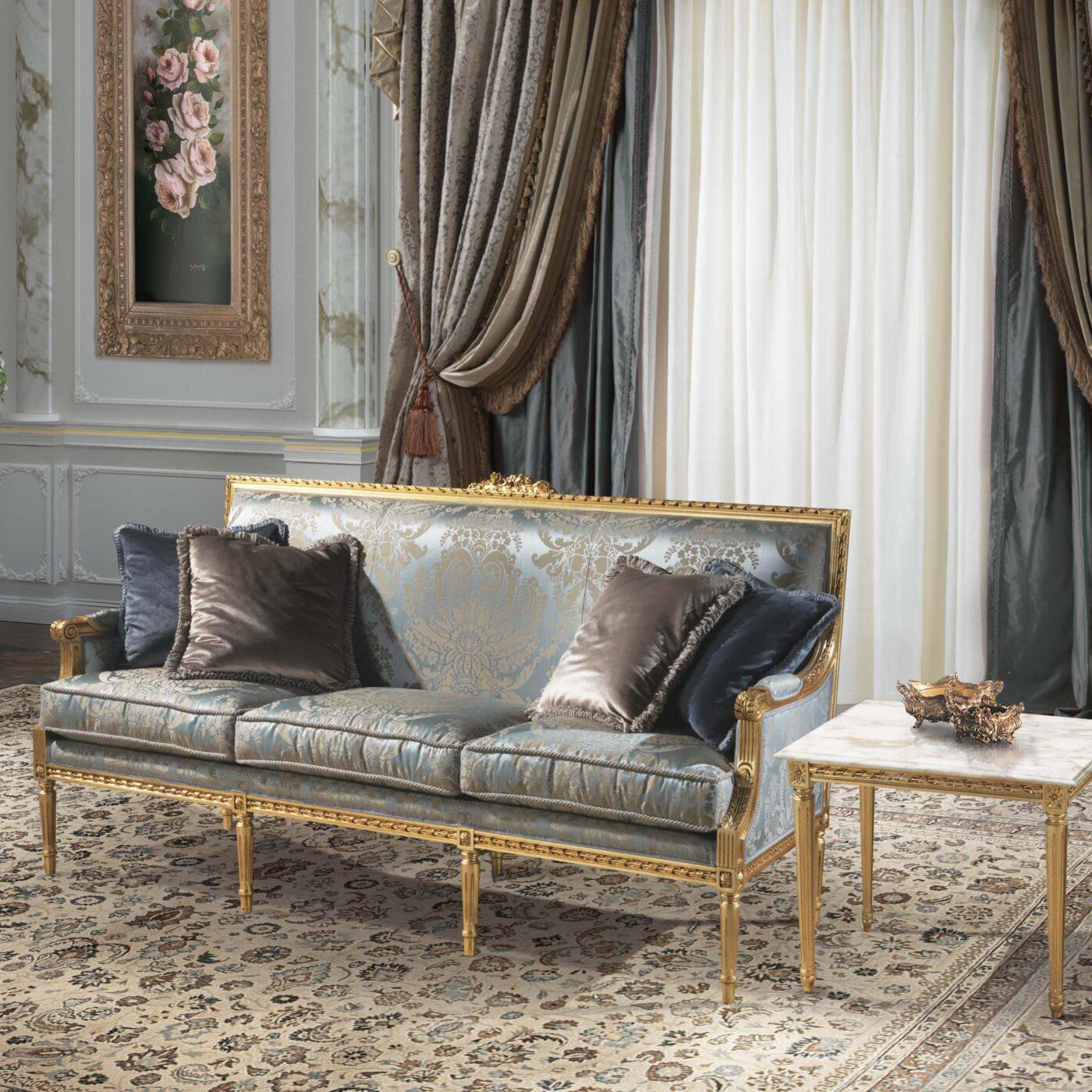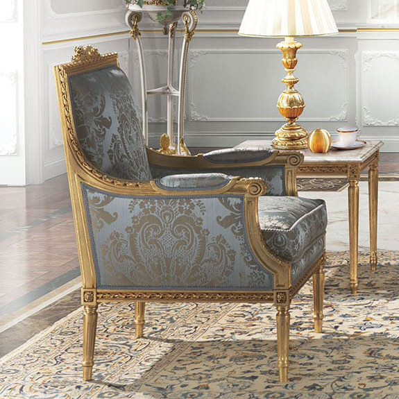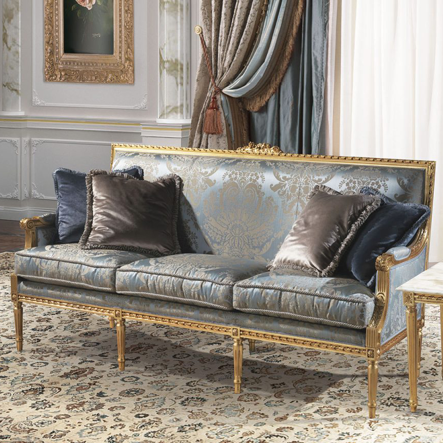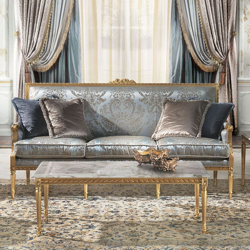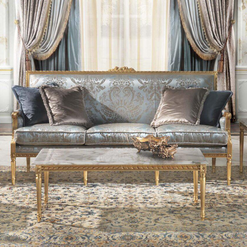 The Louis XVI Conrad lounge is made up of a 3-seater sofa, a 2-seater sofa, armchairs and side and central tables, made with the best craftsmanship.