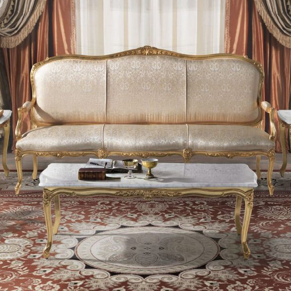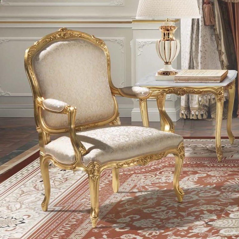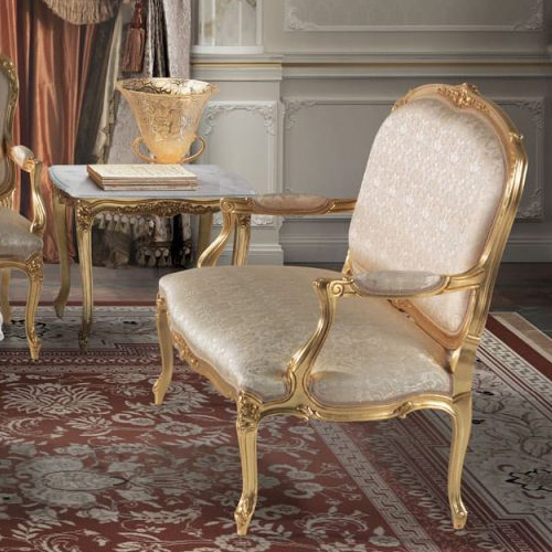 Angelo Cappellini’s Mauriac collection is a celebration of the classic Louis xv style, known for its elegance and rich detailing. This Louis XV living room with its finely hand-carved wooden frame is a masterpiece of craftsmanship that gives the room an atmosphere of luxury and sophistication. The collection features different types of seating, including armchairs, 2 and 3-seat sofas, coffee and side tables, which complement the room with style and functionality.