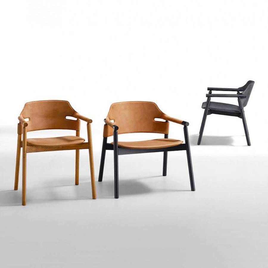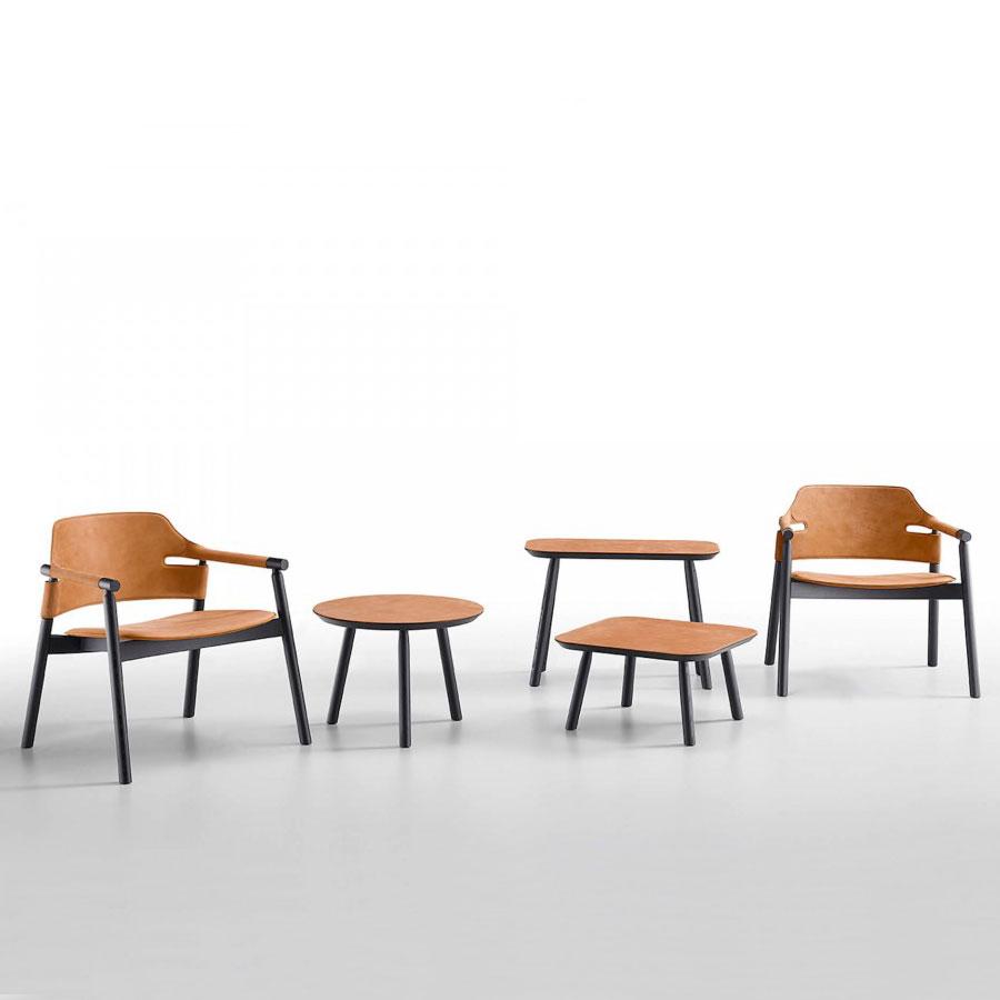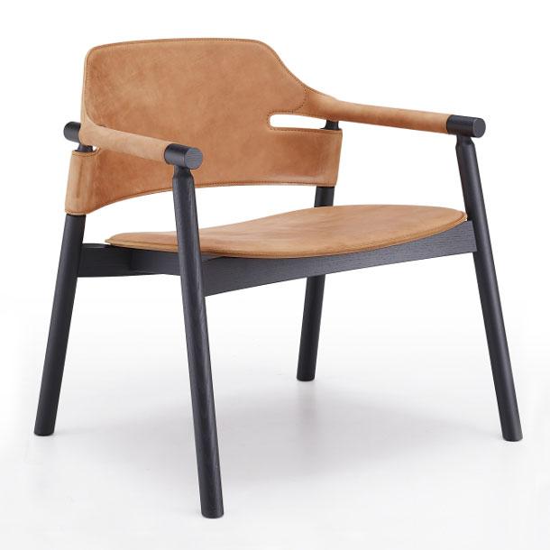 Lounge with lacquered ash frame. Seat and backrest in TK hide or tuscan hide.