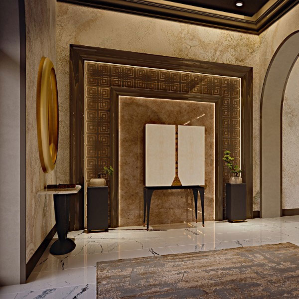 Arco console table with lacquered mdf base and top, aluminium cast arch with gold leaf.