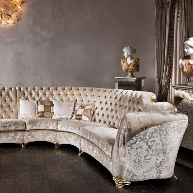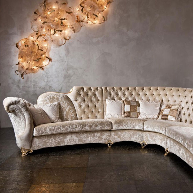 Born from the pen of Giuseppe Tempesti, the Florindo collection has a unique personality, capable of bringing together a series of characteristics such as the preciousness of the capitonné padding, with the scrolls of exposed wood, passing through the all-round geometries of the structures.
