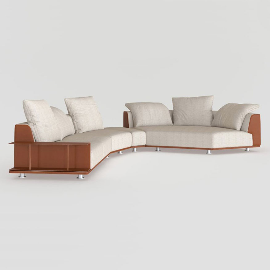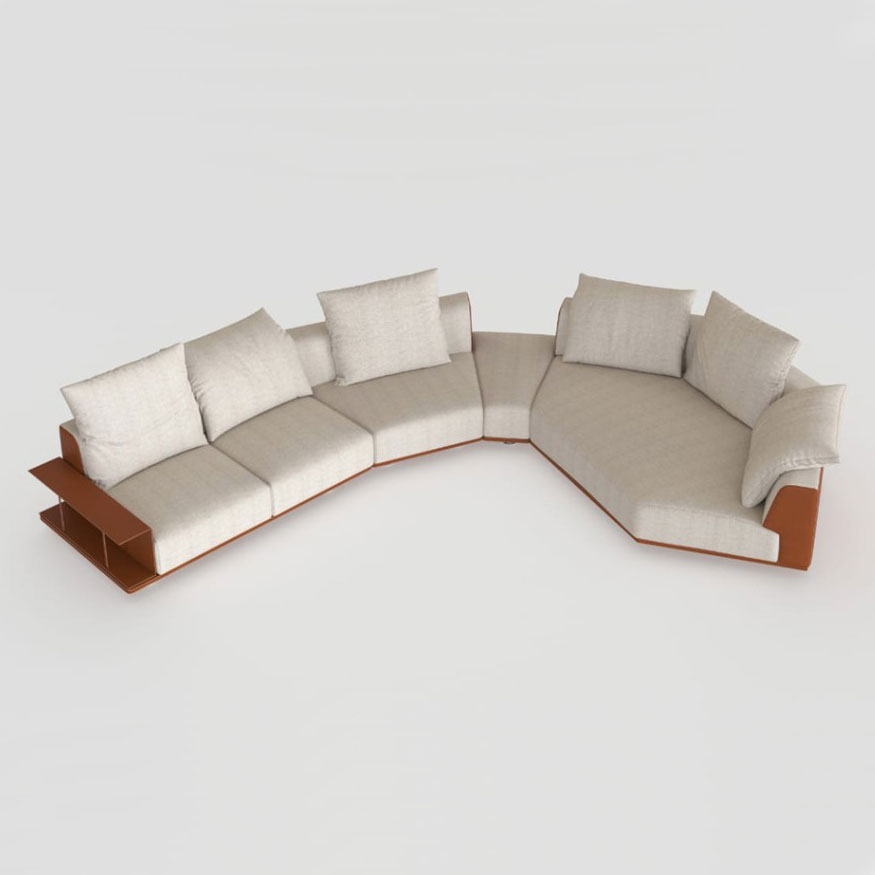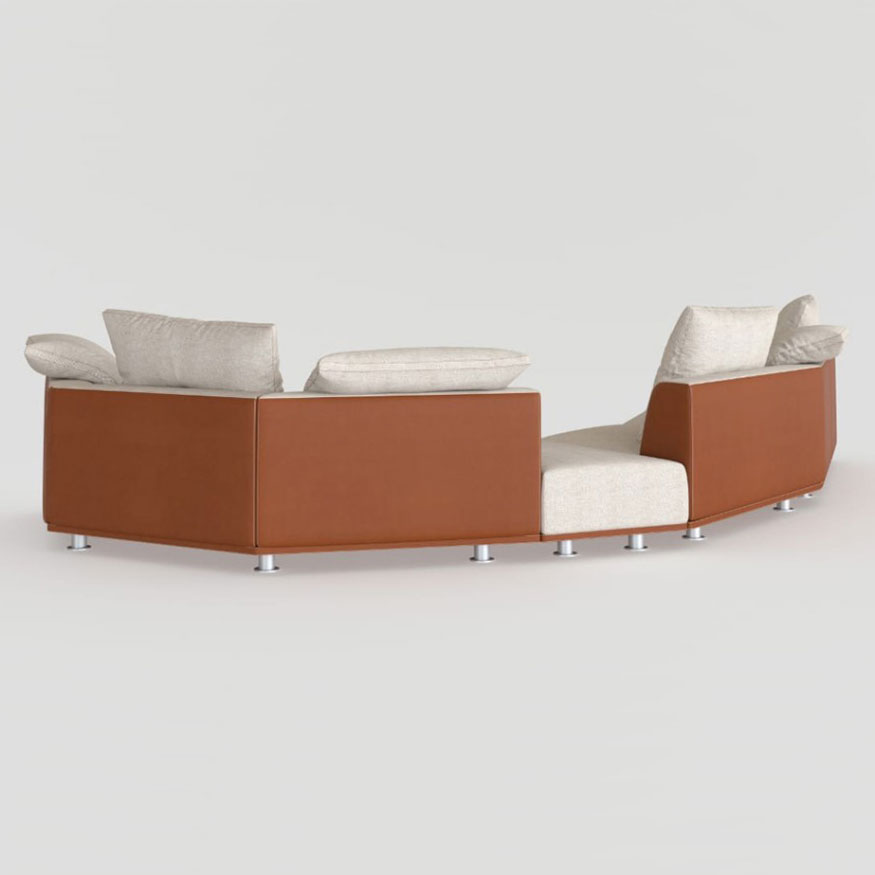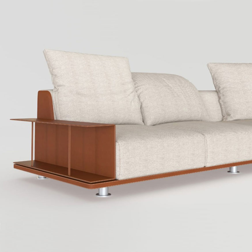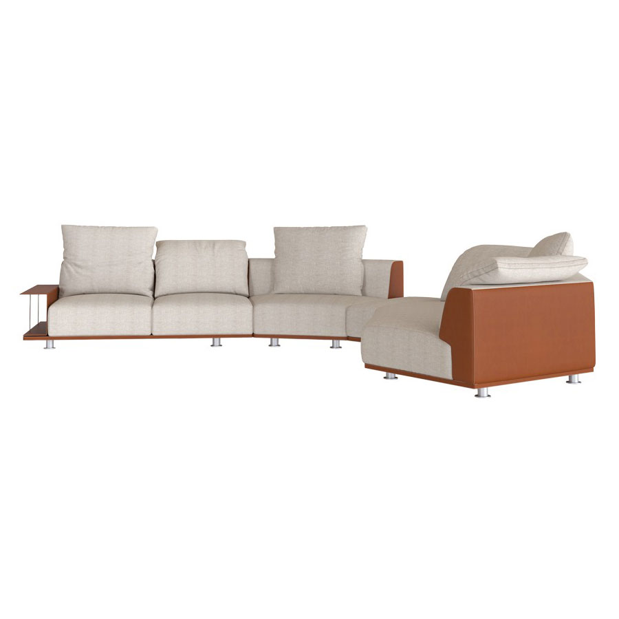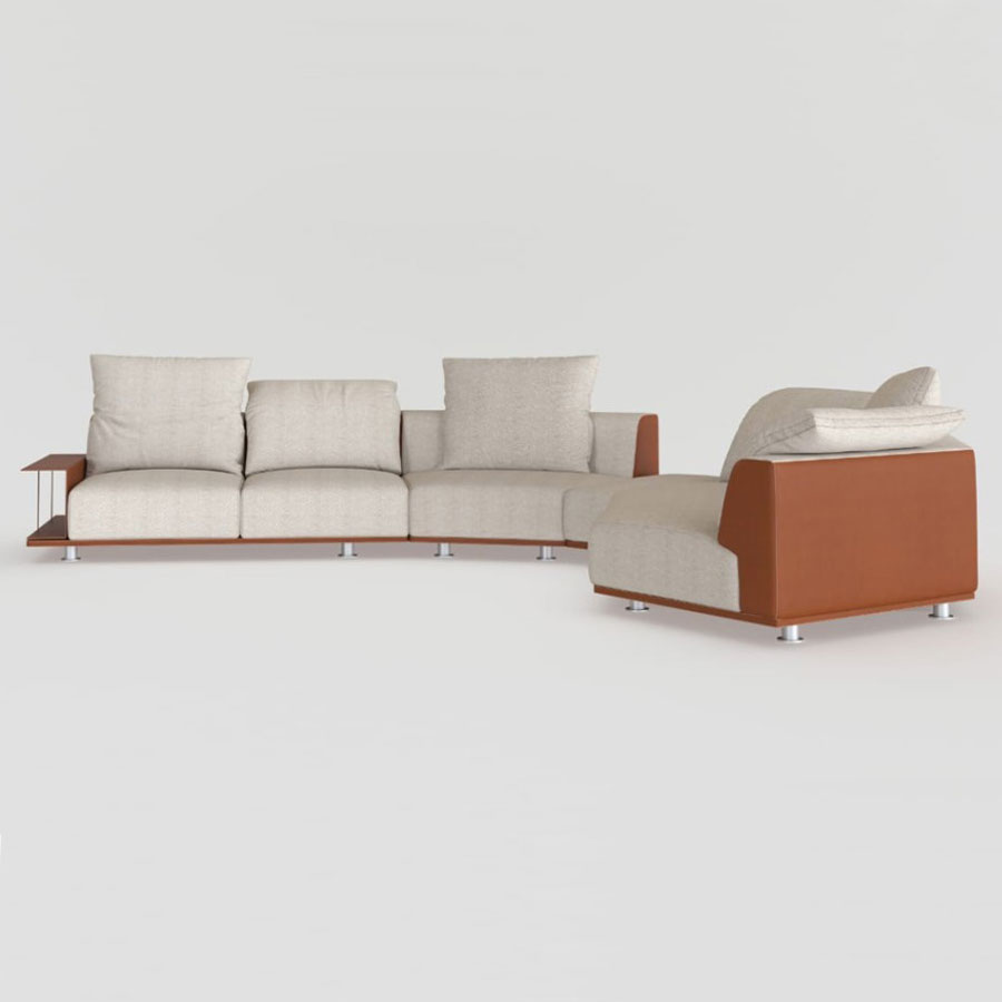 An essential and highly customizable sofa, with numerous composition possibilities: the various elements can be combined with each other, arranged and juxtaposed as desired, creating solutions suitable for every architectural and comfort requirement.