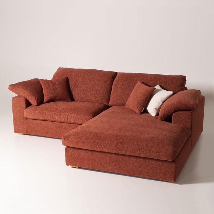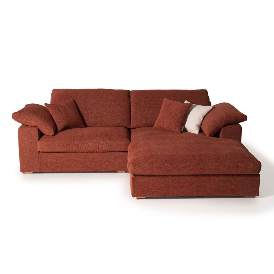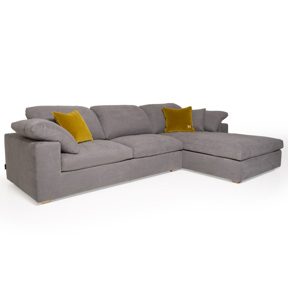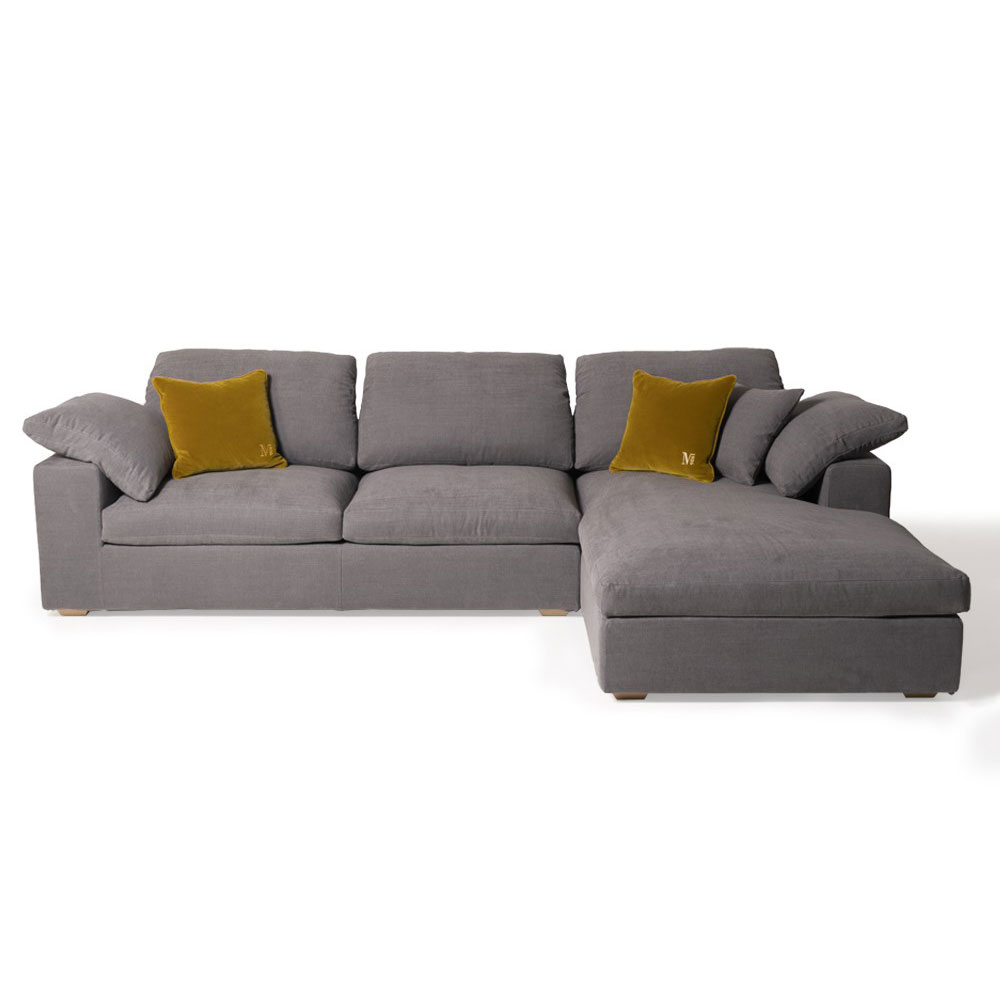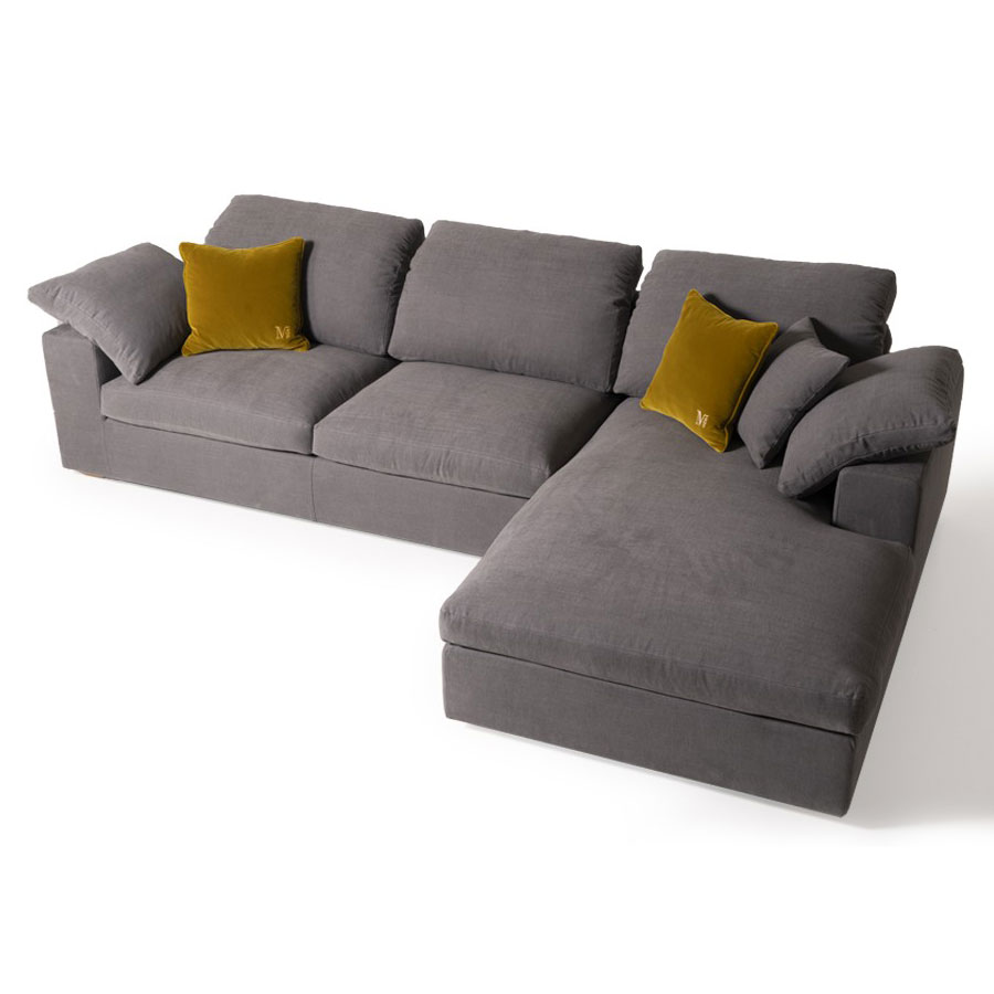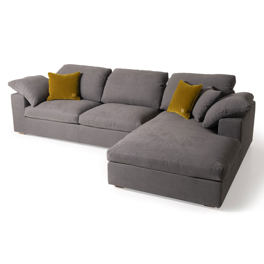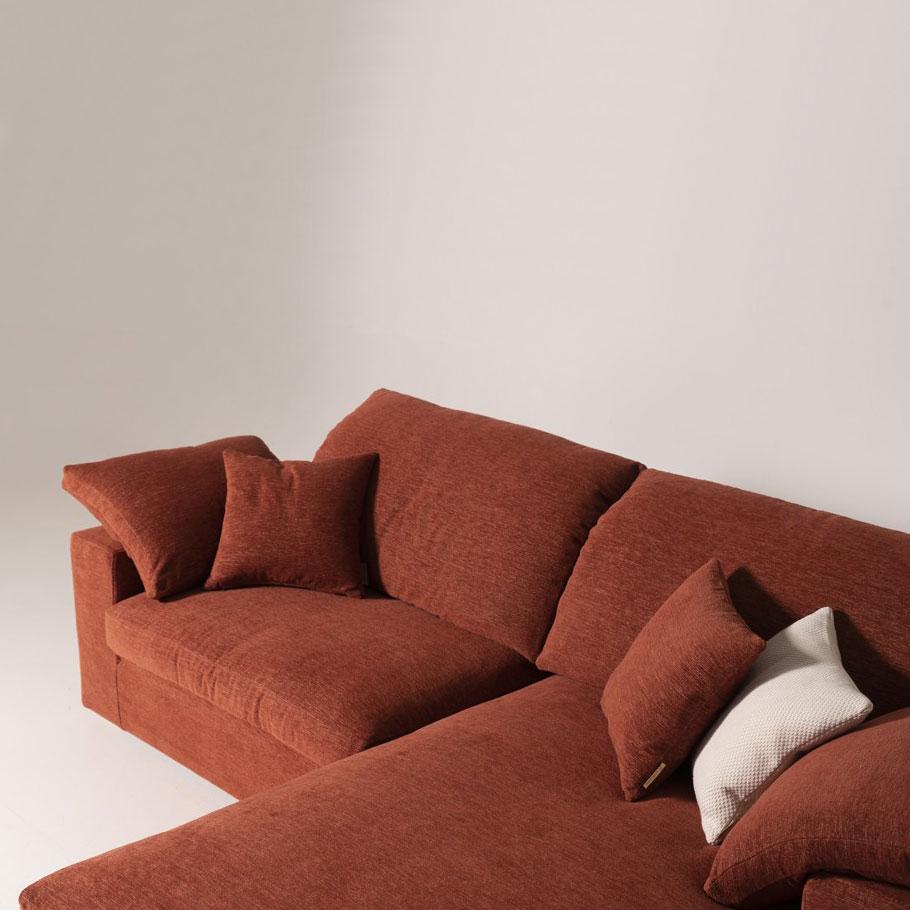 Here you can admire it in the new composition with a 180 cm deep hammer chaise longue, a particular seat that also wraps around the armrest and allows you to have in the most advanced part a wider and more comfortable space to sit.