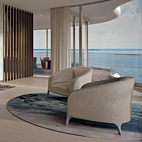 The combination of the finish of the structure, which can be lacquered or in natural solid wood, with the exclusive fabric or leather upholstery of the collection, fully expresses the high level of refined tailoring that distinguishes Mantellassi.