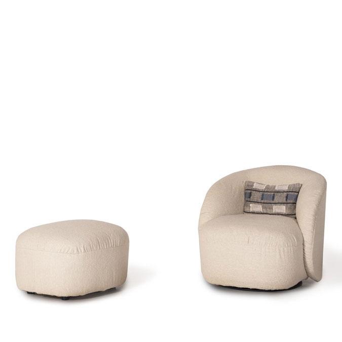 POUF WITH SOFT AND ROUNDED SHAPES, COMBINED WITH THE MUFFIN ARMCHAIR