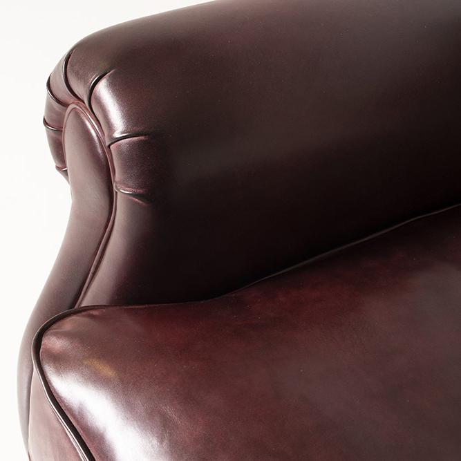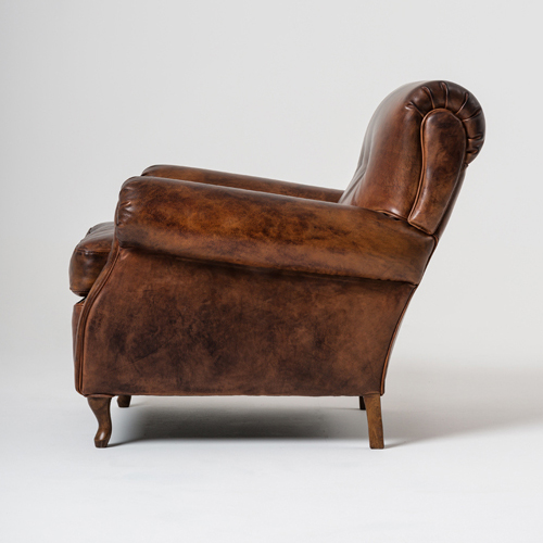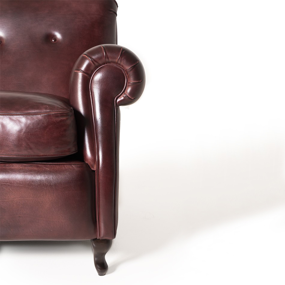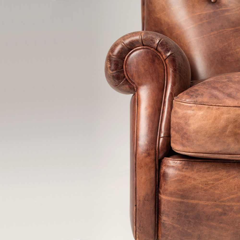 The timeless style of this armchair is suitable for any environment. The timeless shapes, the excellent comfort and the beauty of the materials make this object unique in its kind. The hand-finished natural crust leather finish and the walnut-stained beech base are precious.