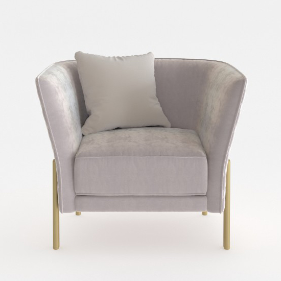 It is a modern style product that is very clean and light in shape.The base is made up of legs in solid satin brass that lift and follow the curved line of the upholstered shell, on which the seat and back rest.