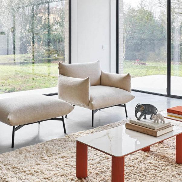 Designed by Studio Pastina, the Area collection combines extremely soft seating with an essential and clean design. The shape of the cushions is repeated in the construction of the seat and back. Soft and welcoming, the volumes are designed to accompany the body in a harmonious and dynamic way.