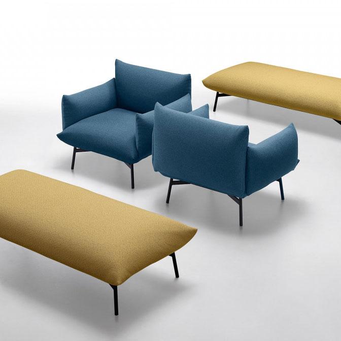 Area is the first collection of sofas from MIDJ which faithfully represents the concept of transversality underlying our entire production. The collection is proposed as a complete solution to the needs of private and public spaces. Designed by Studio Pastina, it combines incredibly soft seats with an essential and clean design. The soft and welcoming volumes of the seat, back, and armrests, harmoniously and dynamically accompany the body.