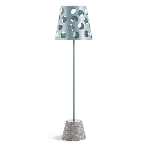 Direct light floor lamp. The lamp is made with a cement base, a metal column and lampshade. The lamp is available in a wide range of metal colors. On the electric power cable there is the on / off switch. The cable has a length of 2 m and is covered in black silk.
