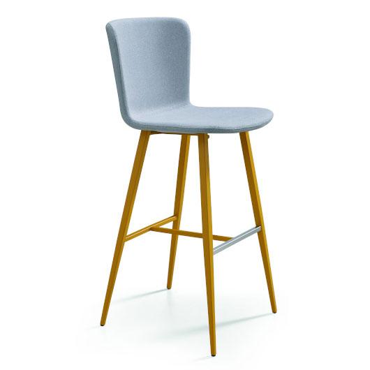 Calla kitchen stool with four legs base in lacquereed steel. Seat upholstered in leather, faux leather or fabric.