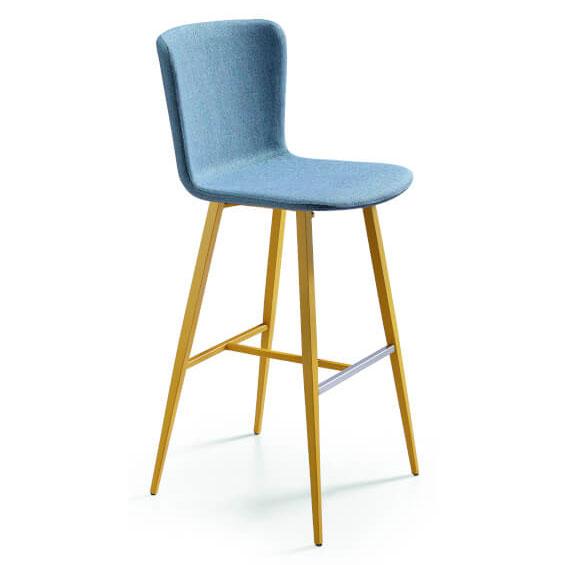 Faux bar stool with four-legs base in lacquered steel and seat upholstered in leather, imitation leather or fabric.