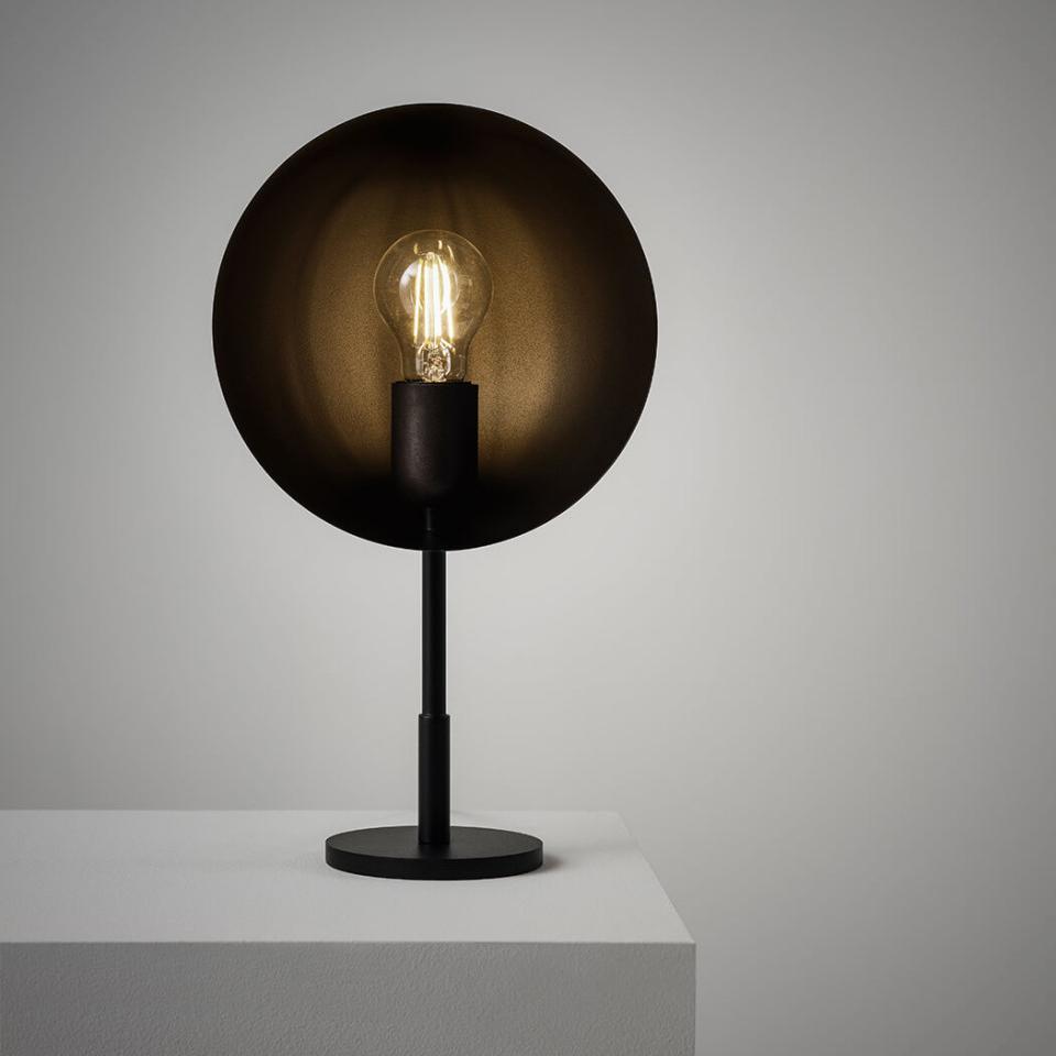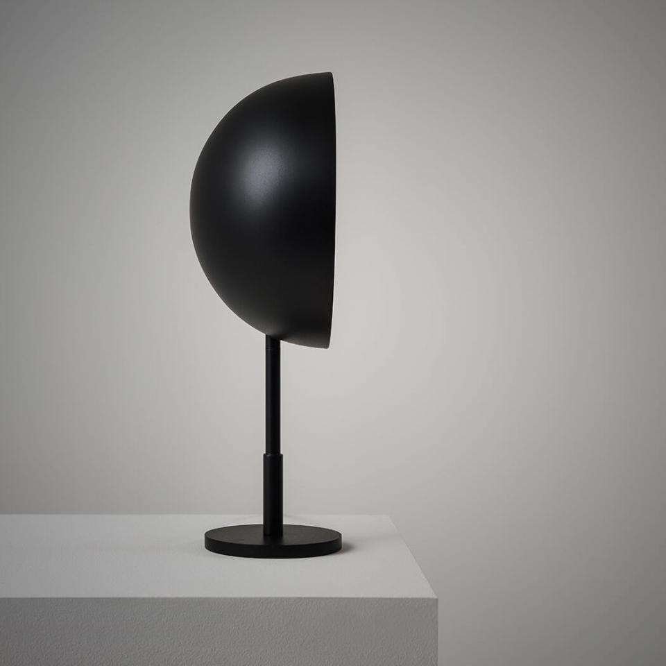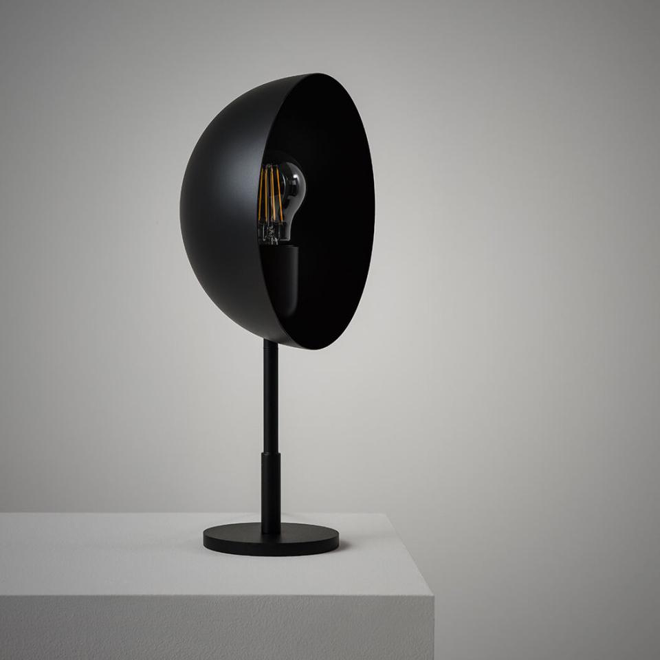 Charlotte table lamp with direct light. The structure and the lampshade is made of black metal and the lampshade can be rotated as desired. On the power cable there is the on / off switch. The cable has a length of 1.5 m and is covered with black silk.