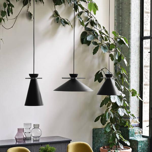 Japan direct light suspension lamp. The lampshade is made of metal lacquered in black and white. The lamps of the Japan collection are available in three different sizes, which can be combined with each other in group structures.