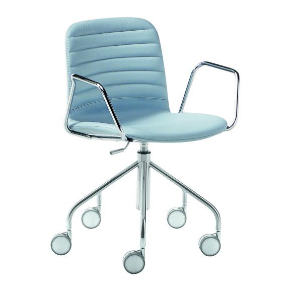 Operative chair with armrests, five ways base, swivel and high adjustable. Shell upholstered with leather, faux leather or fabric.