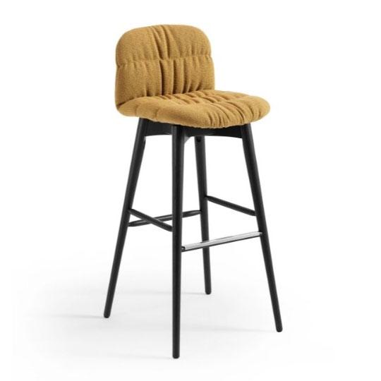 Fixed Liù stool with wooden base and seating upholstered in fabric, leather or faux leather.
