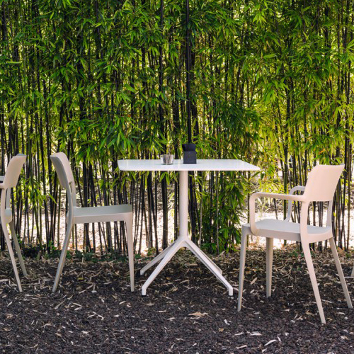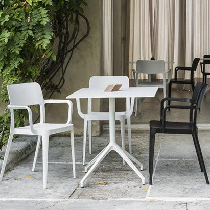 Luna bistro base with four star base in lacquered metal available in two heights (h.73 and h.103 cm).