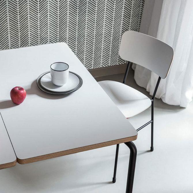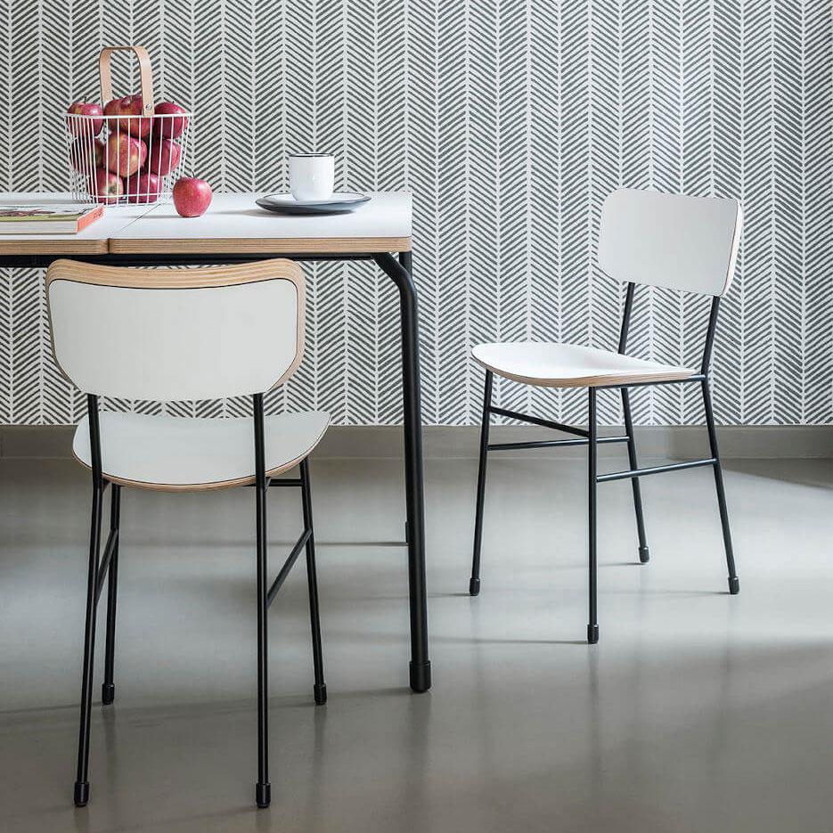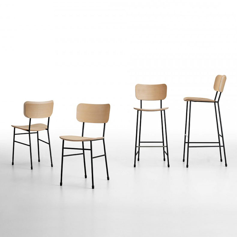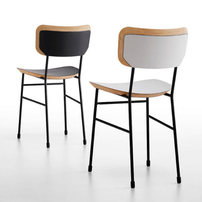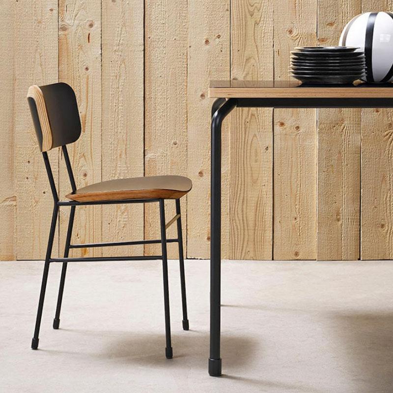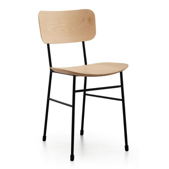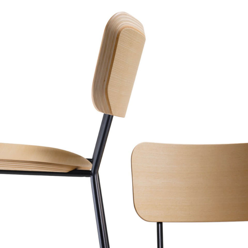Master chair with four leg base in laquered metal and wooden seat and backrest.