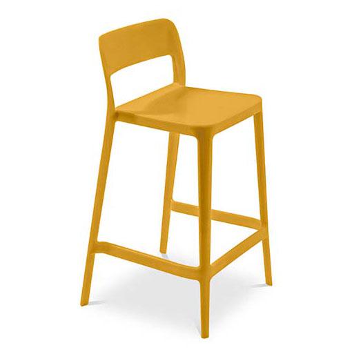 Nenè stackable stool with four-legged base, made in polypropylene and suitable for indoor and outdoor use. It is stackable up to 4 units, and is also available in the H75 version.