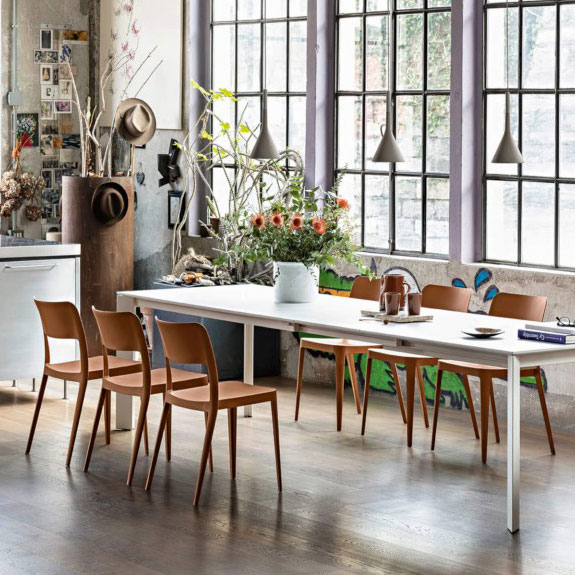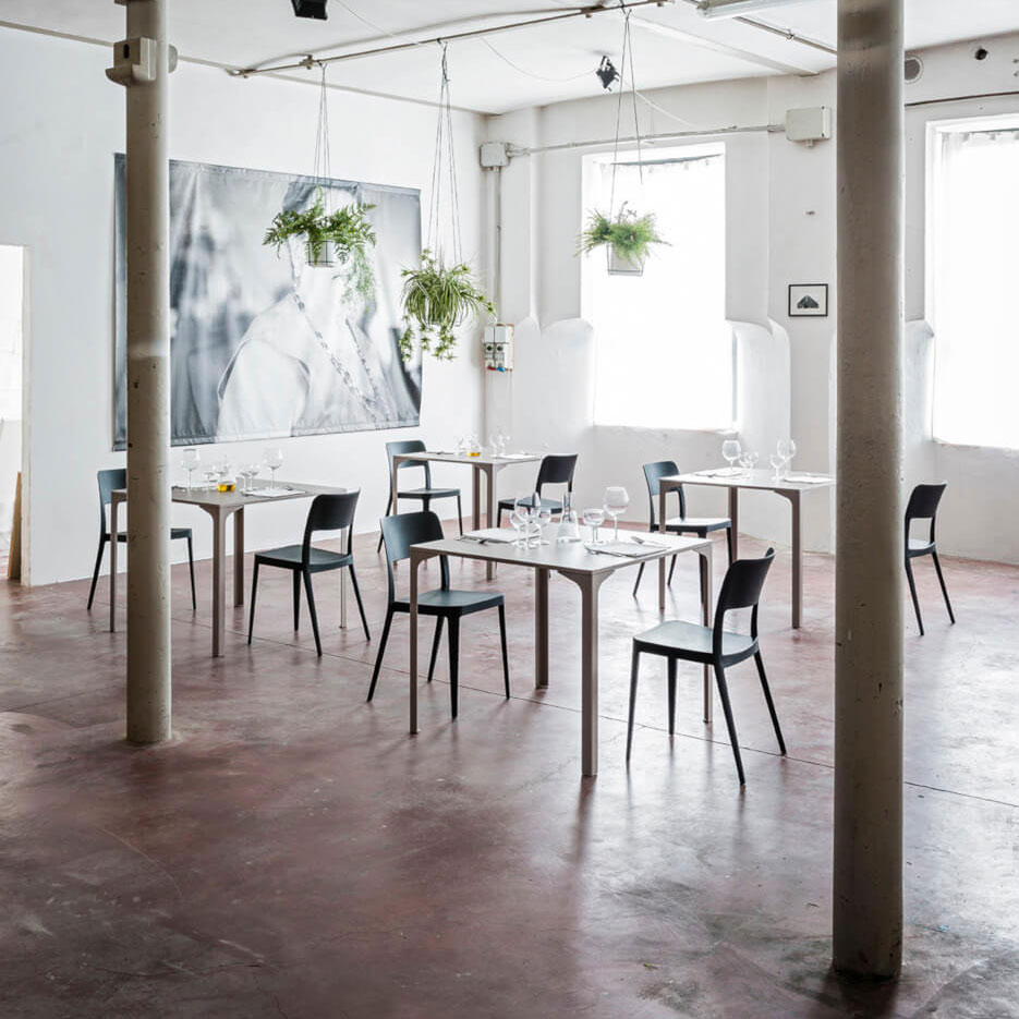Nenè is a stackable chair with four leg frame, made in polypropylene.