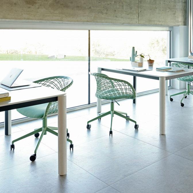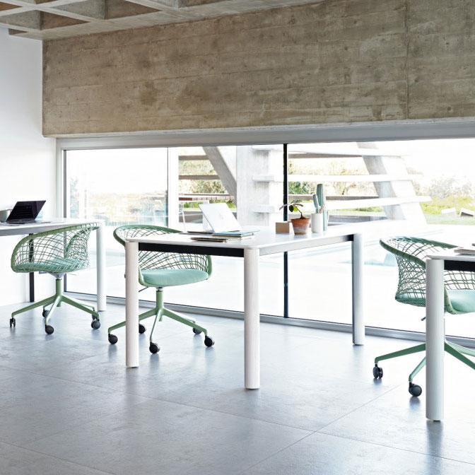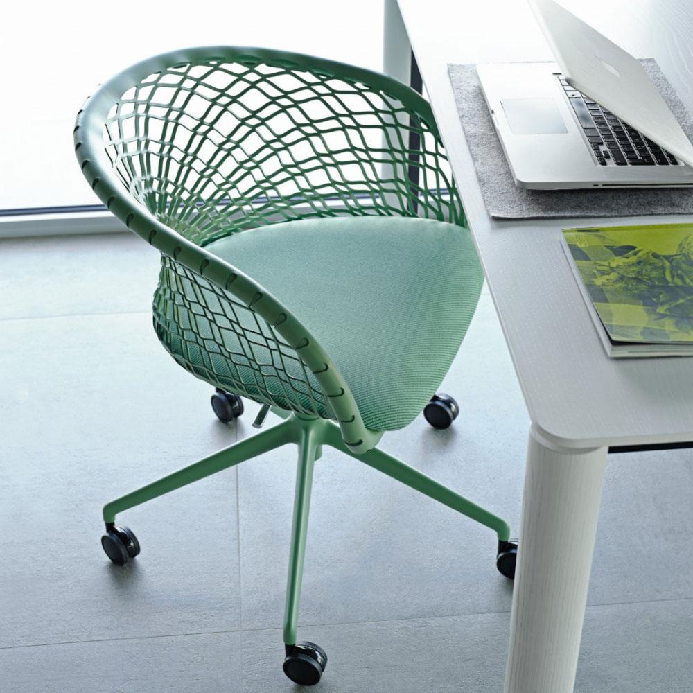 The P47 executive chair accentuates the elegance of professional and home-office spaces. The leather base is extraordinarily fresh and resistant and, combined with the backrest, ensures the right posture for an ergonomic armchair with an intelligent design.
