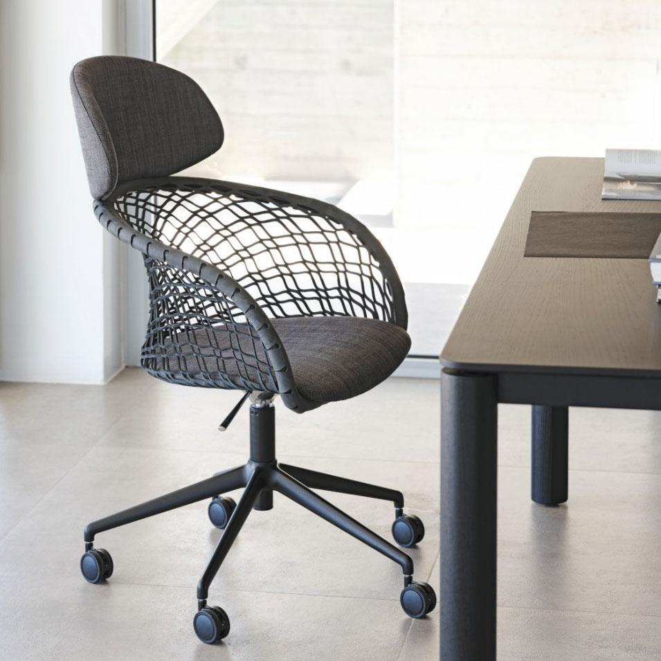 The P47 executive chair accentuates the elegance of professional and home-office spaces. The leather base is extraordinarily fresh and resistant and, combined with the backrest, ensures the right posture for an ergonomic armchair with an intelligent design.