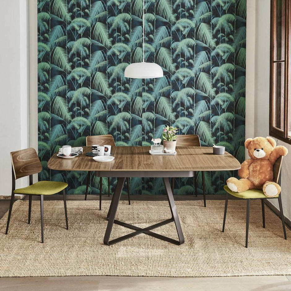 Paul extendable table with metal base. Wooden or crystalceramic top, with matching extensions.