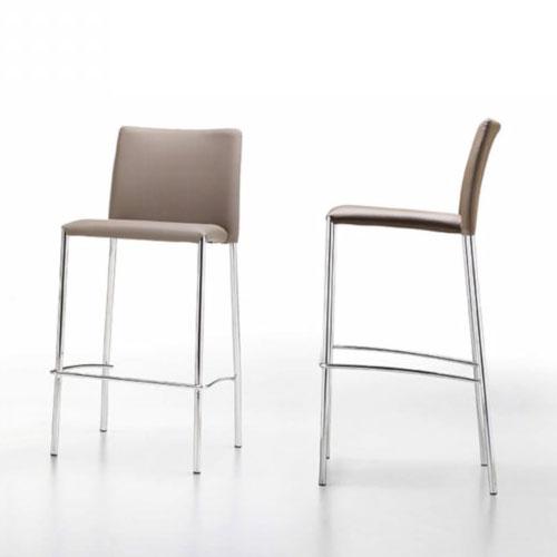 Silvy stool with four leg base in chrome or lacquered metal. Seat upholstered in leather, ecoleather or fabric.
