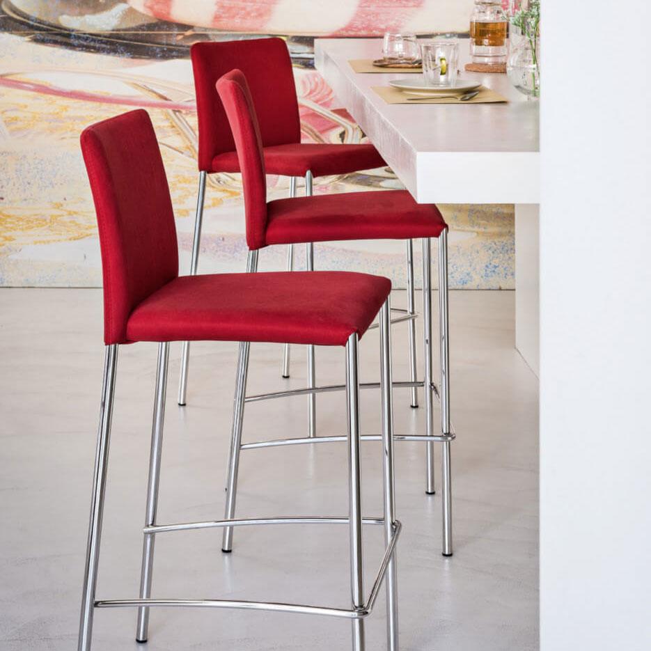 The Silvy TS collection is composed by different chairs and two stools. Suitable for furnishing kitchens and dining rooms, it can be upholstered in leather, faux leather and fabric.