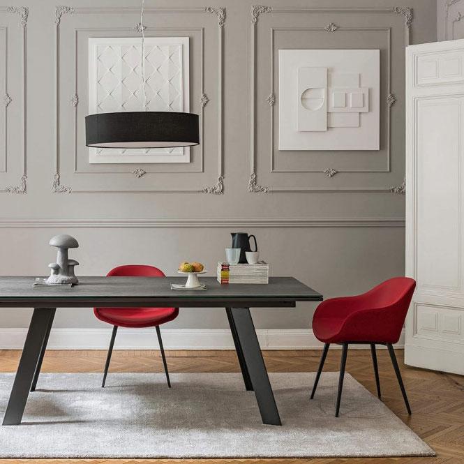 Sonny P Q armchair with four square legs in lacquered steel. Shell upholstered in leather, ecoleather, fabric or custom’s fabric. Available the version with back face upholstered with different material.