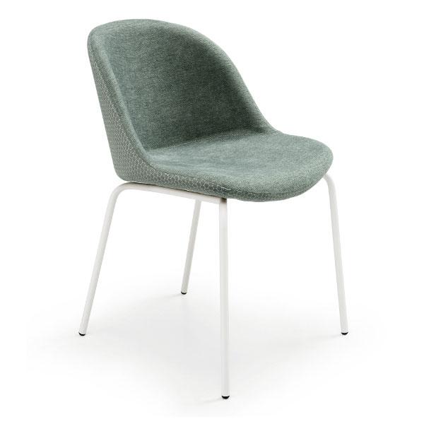 Armchair with four leg frame in lacquered or chrome steel. Seat upholstered in leather, ecoleather, fabric or custom’s fabric. Available the version with backrest upholstered in different material.
