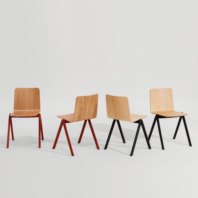 Stack chair is made up of two elements: base and shell that join without screws, easy to ship and easy to assemble, compact and stackable hypothetically to infinity.