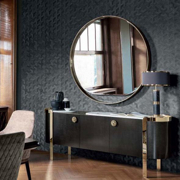 The Gyselle round mirror is a splendid decorative yet functional accessory. It is surrounded by a metal band whose sophisticated glam illuminates the room with a new light.