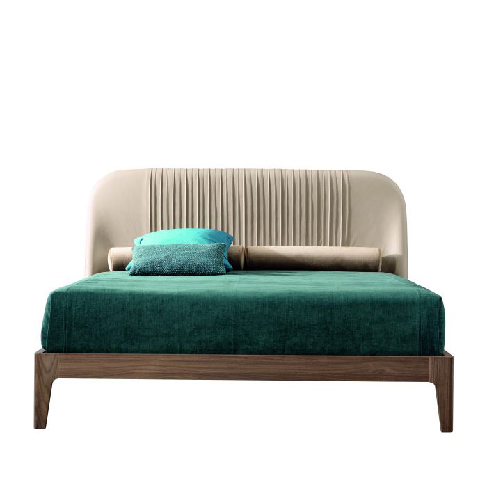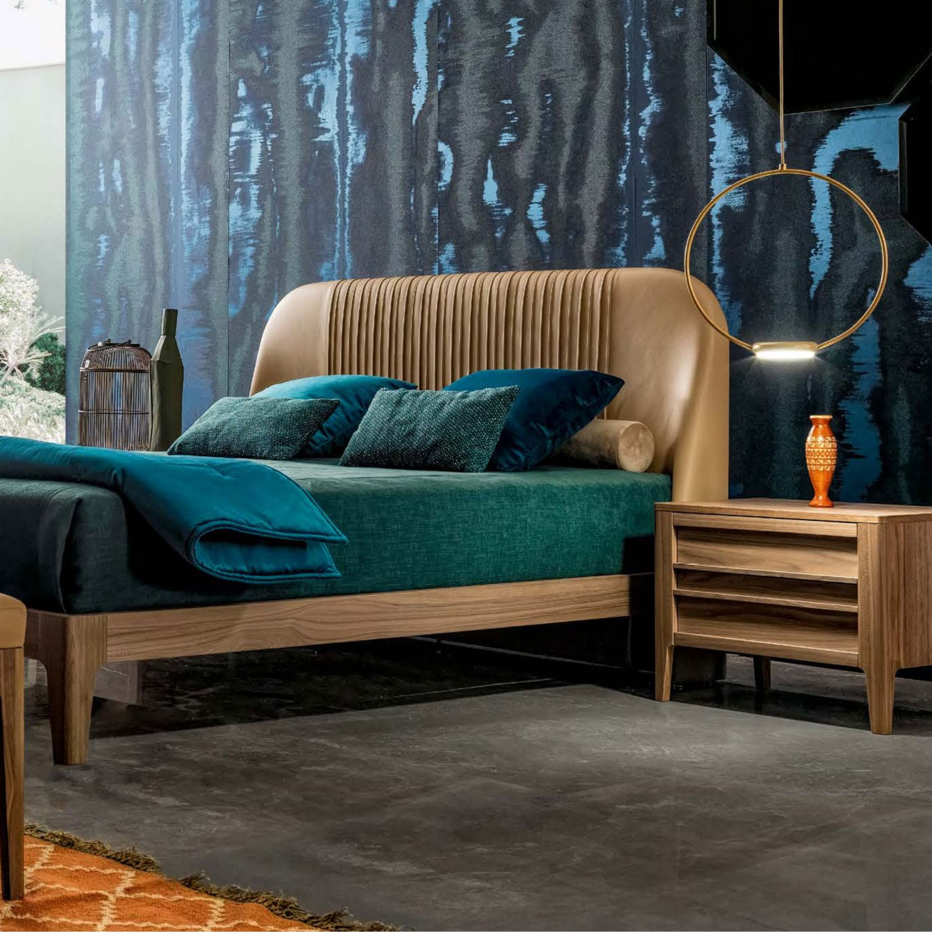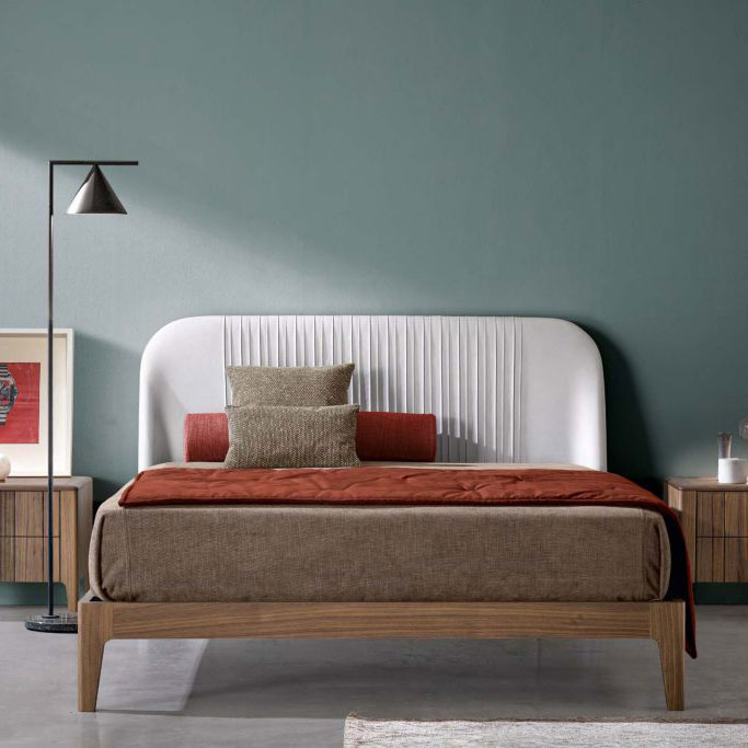 The beds are all patented and made of canaletto walnut with upholstered elements and natural fiber covers.