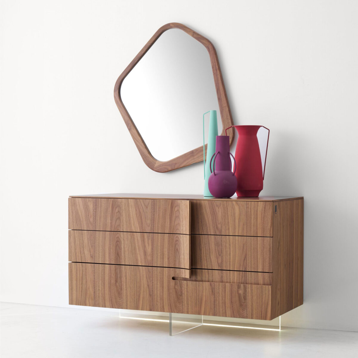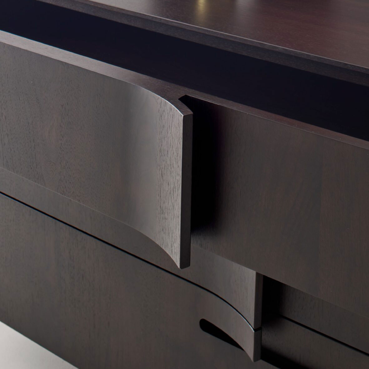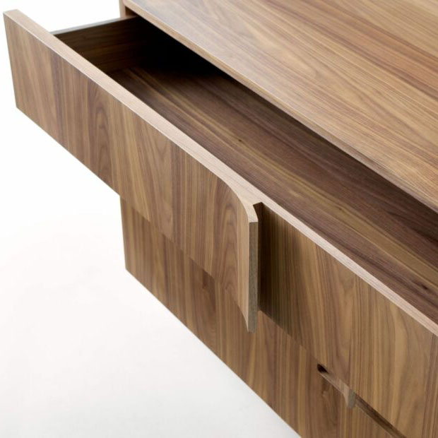 A delicate curve shapes the Canaletto walnut wood, characterizing the drawer and inviting the cabinet to open. Every piece of Modesign furniture is meticulously designed, even on the inside.