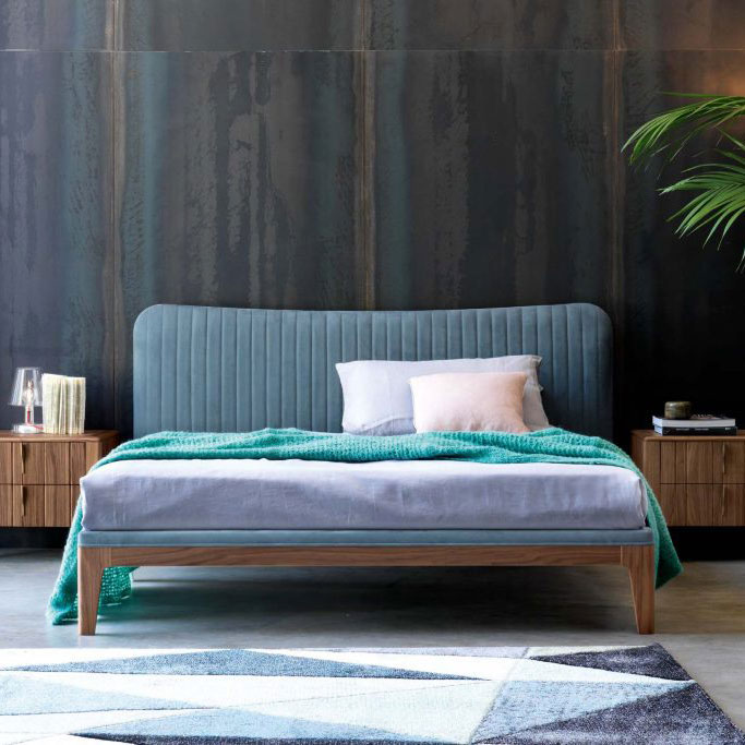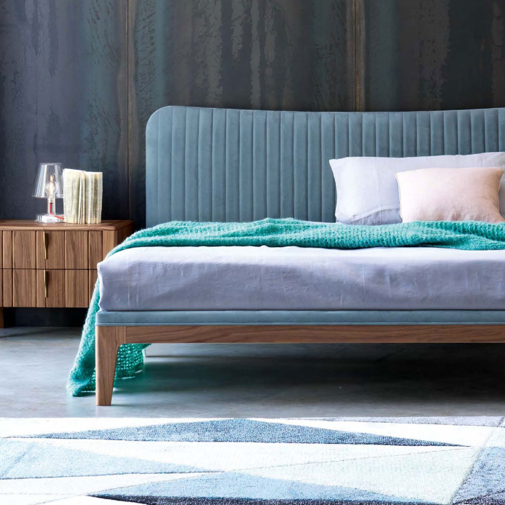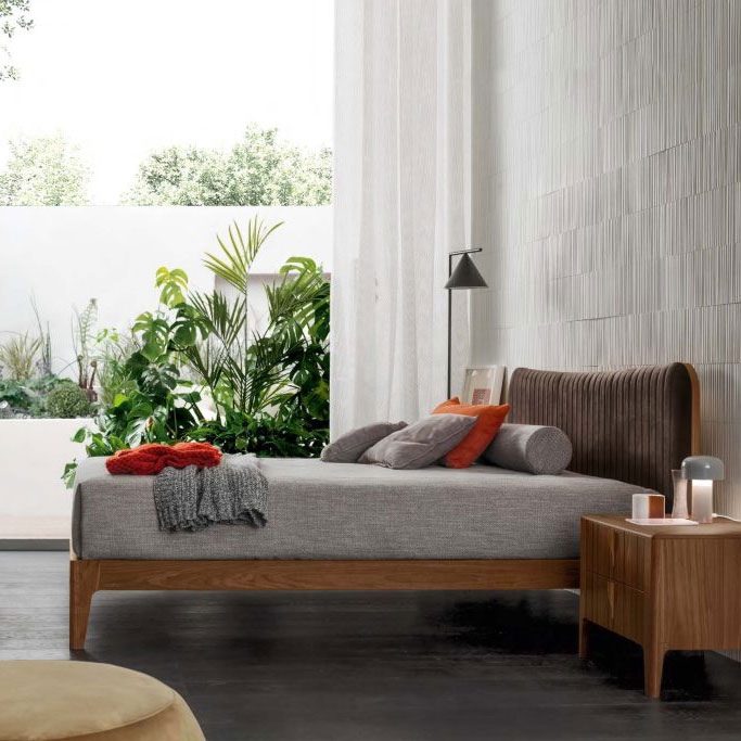 The beds are all patented and made of canaletto walnut with upholstered elements and natural fiber covers.