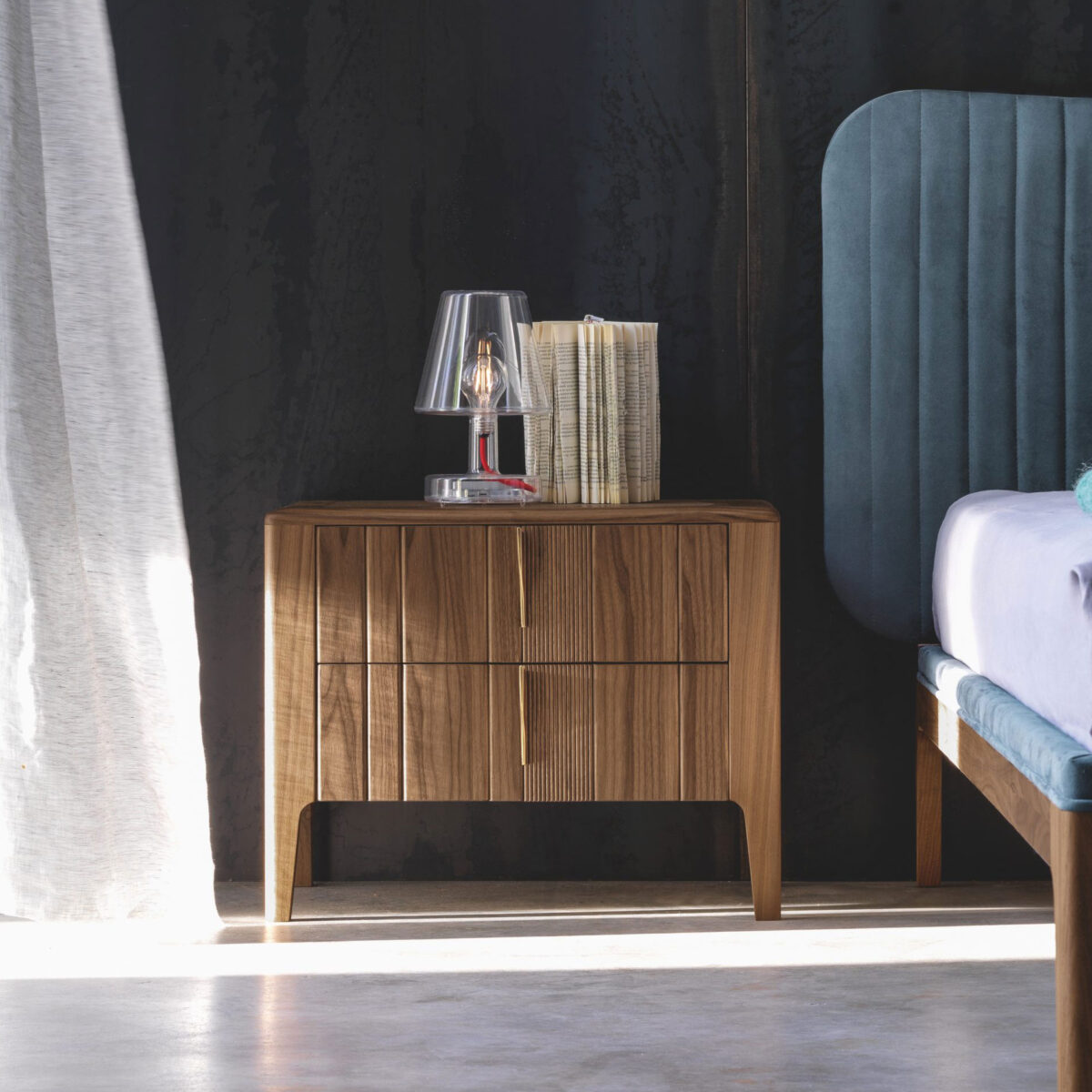 In the world of Domino every style finds a proposal, and each proposal can be declined in a large number of variants. Domino is the possibility to customize each piece with solid wood staves of different processes: plain wood stave, striped stave, wood square stave and metal square stave. Solid and ductile, rigorous and creative, wood draws original textures on the doors, emphasizing the exclusivity of each piece of furniture, giving rise to an increasingly personal stylistic language.