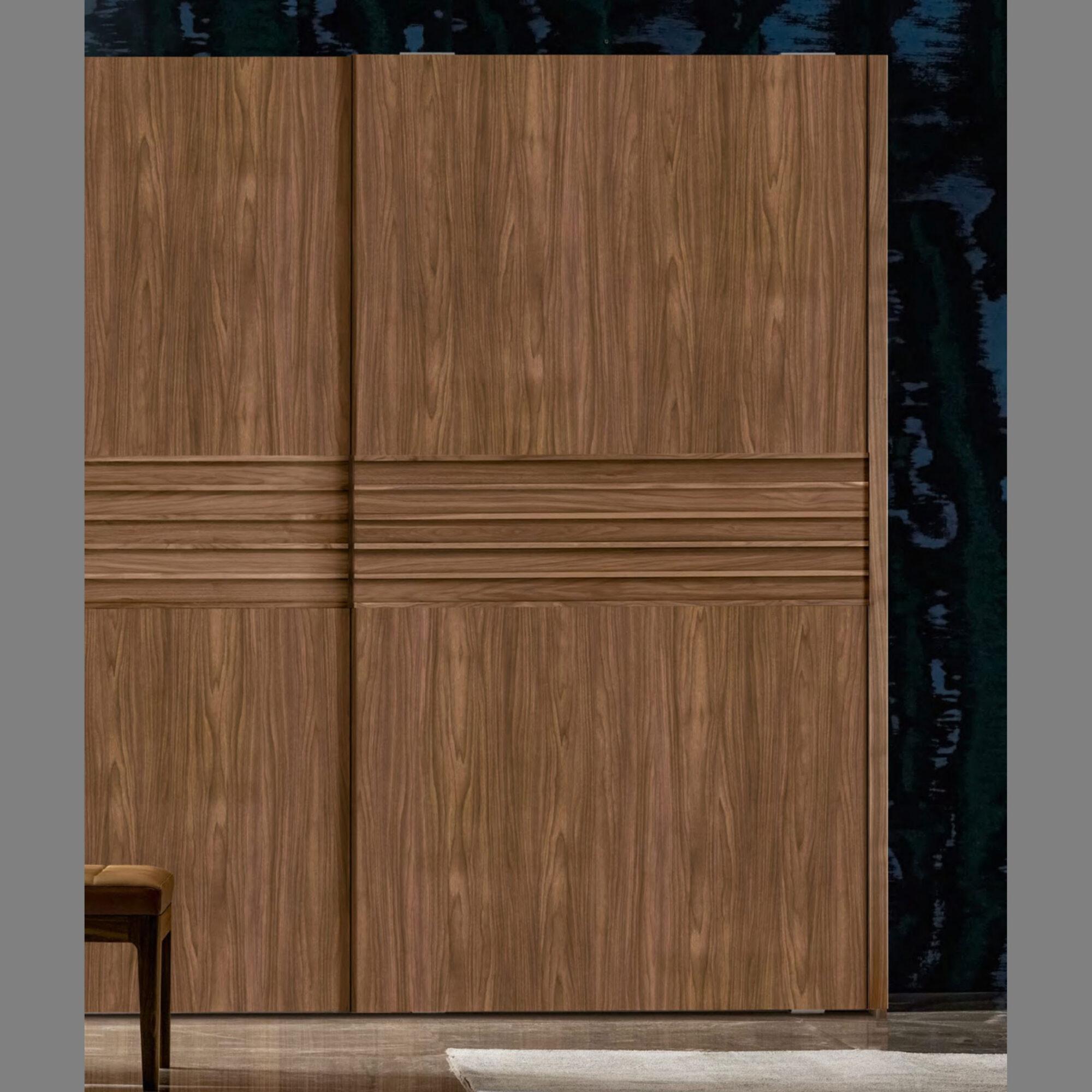 The hola cabinets are offered with 2 sliding doors and 4 or 6 hinged doors. It is possible to customize the decorative band horizontal with marble effect glass (SAHARA NOIRE/KALACATTA) and metal effect glass (SILVER/GOLD).