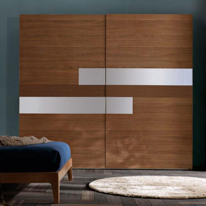 The closets are offered with 2 sliding doors and 4 front variants. All doors can be customized with the 4 slats: plain wood slat, solid wood stripe slat and square wood slat.