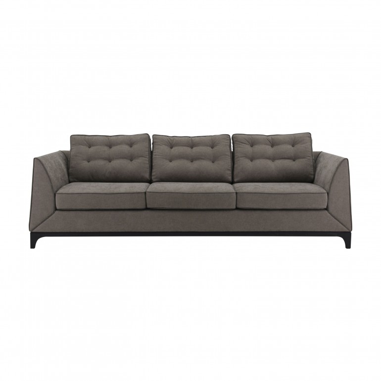 Comfortable sofa with markedly contemporary lines. The back features three deep-buttoned cushions, which lend the products a certain originality and well-defined identity. It is upholstered with webbing and superior quality foam. Piping that contrasts with the fabric of the sofa is particularly suitable for this item.
